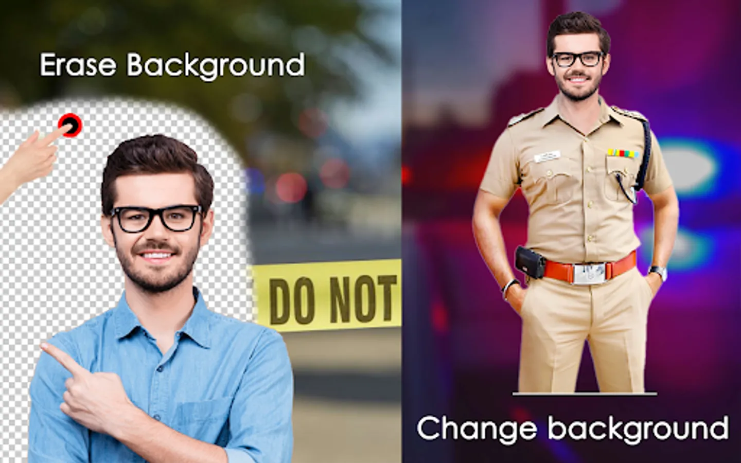 By the use of Auto Eraser you can remove any object of police image photo editor application.