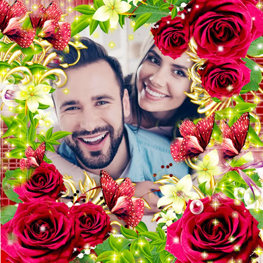 Rose flower photo frame will make your photos look cute in your photos and text.