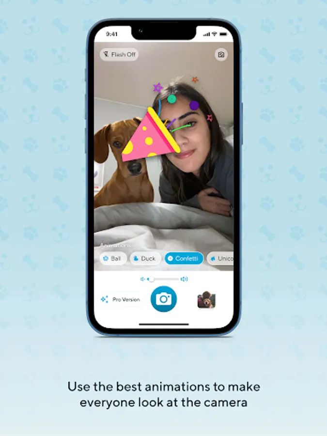 Now you can take selfies with your pet and it will always look at the camera. Enjoy perfect selfies and capture the attention of your dog, cat or even a newborn very easily.
