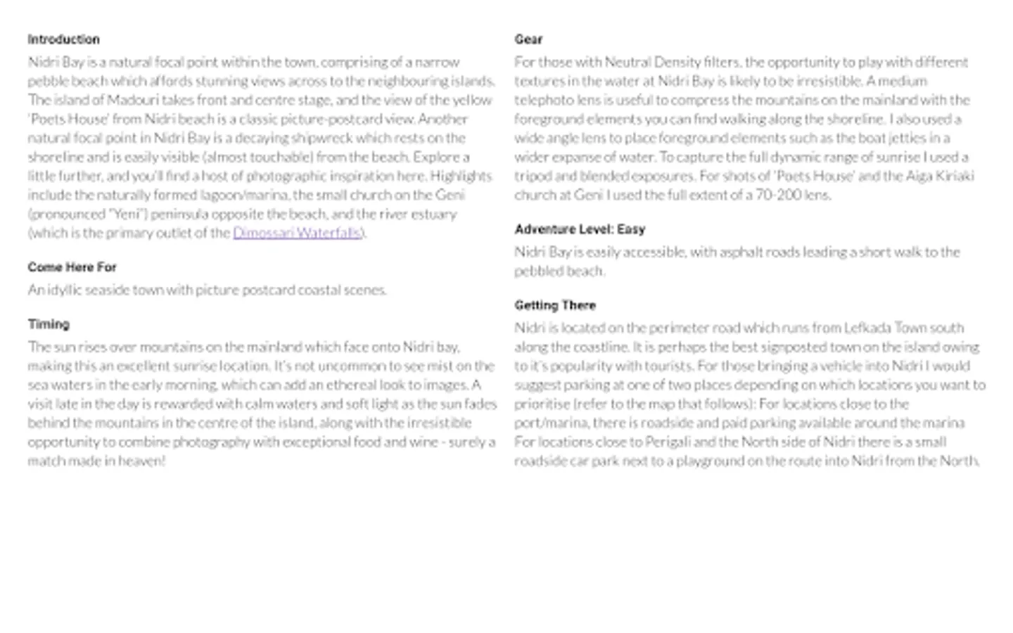 Created by professional travel photographers, Photographing Lefkada is a thoughtfully curated and beautifully crafted digital guidebook for use on the road giving you all the research and expertise you’ll need to get the best out of your visit to the Greek island straight off the plane. What’s more, the ebook is regularly updated so readers can benefit from new content at no extra cost.