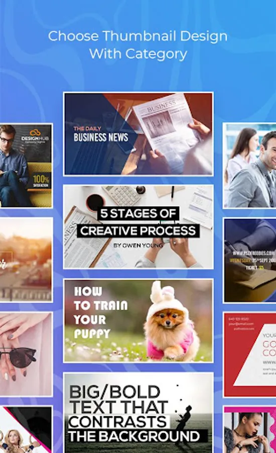 With video thumbnails, there's no need to hire a professional HD thumbnail designer. After all, time and money are a treasure in business. Go ahead to the video thumbnail creator app for free to start creating stunning thumbnails, cover photo makers, and professional-looking banners.