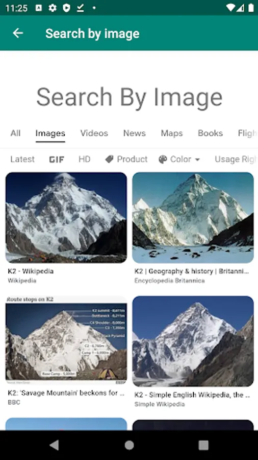 Search the web using Photo Identifier. You can search anything using an image. The image search can be of an animal, plant or a person or even an object photo. You can either take pictures using phone camera or you can use photo from your phone storage. The app also has some sample images which you can use to test image search. The image search results are very accurate if the image searched is popular on the Web. Enjoy using the app.