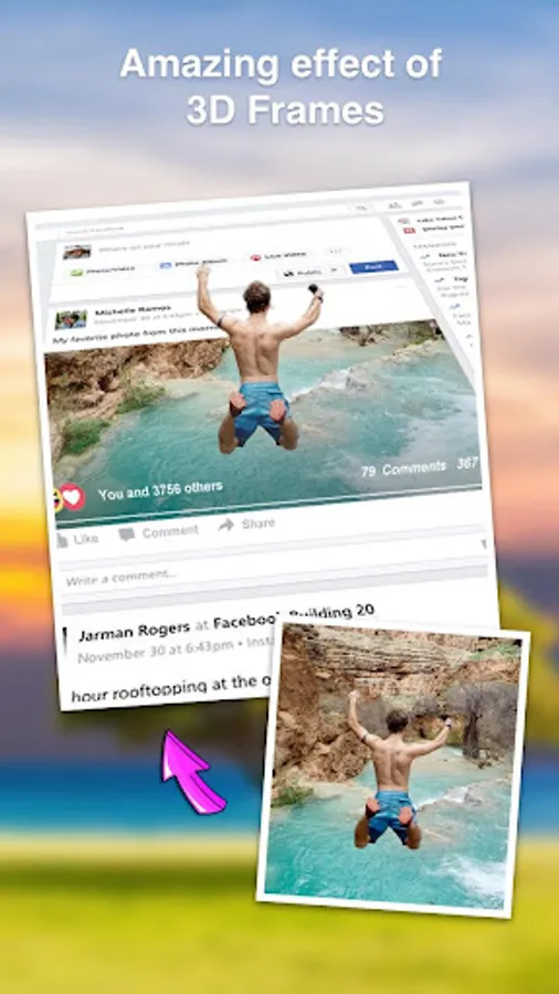 Photo In Hole is a free photo editor app for photography fanatic. Cut Paste put your photo in dream place. 3D Frames - makes you popping out from a photo. If you can dream it, you can achieve it! You choose it!