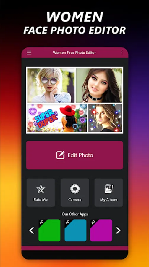 "Women Face Photo Editor" is a best photo editor mobile app designed to empower and enhance the beauty of women in their photos/pictures. This powerful app offers a wide range of innovative features to transform and personalise portraits with ease. From subtle touch-ups to dramatic makeovers, the picture editor app caters to various editing needs and preferences, making every photo stunning and captivating.