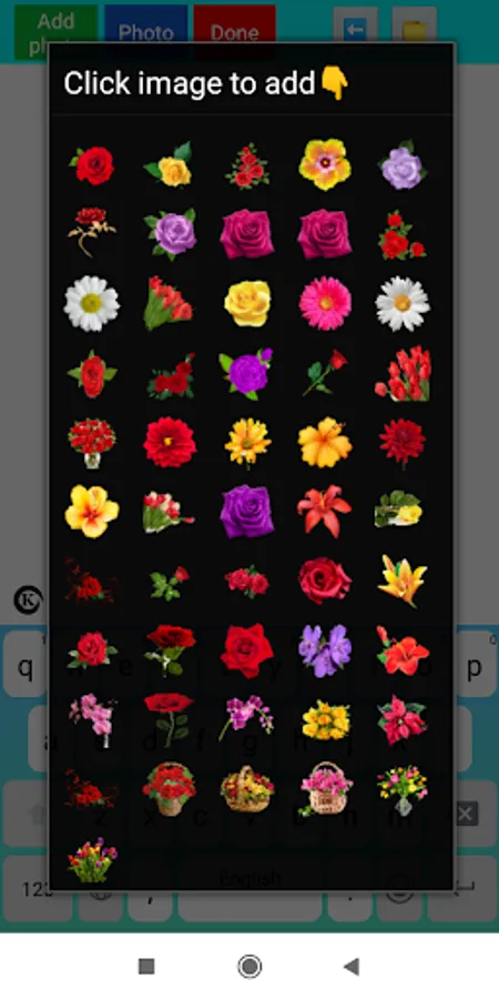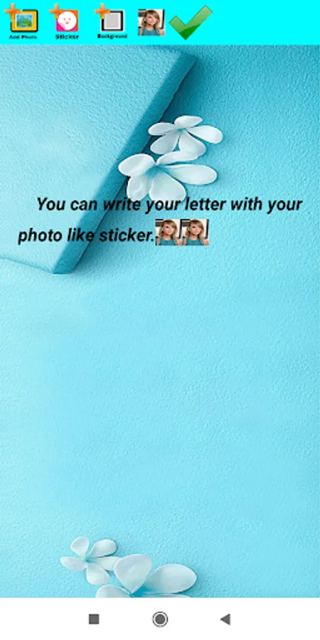 #Add sticker button is the button for add sticker.It is include five type of sticker(Flowers,couple,love,birthday and selfie).Choose sticker and click it to add into your text.
