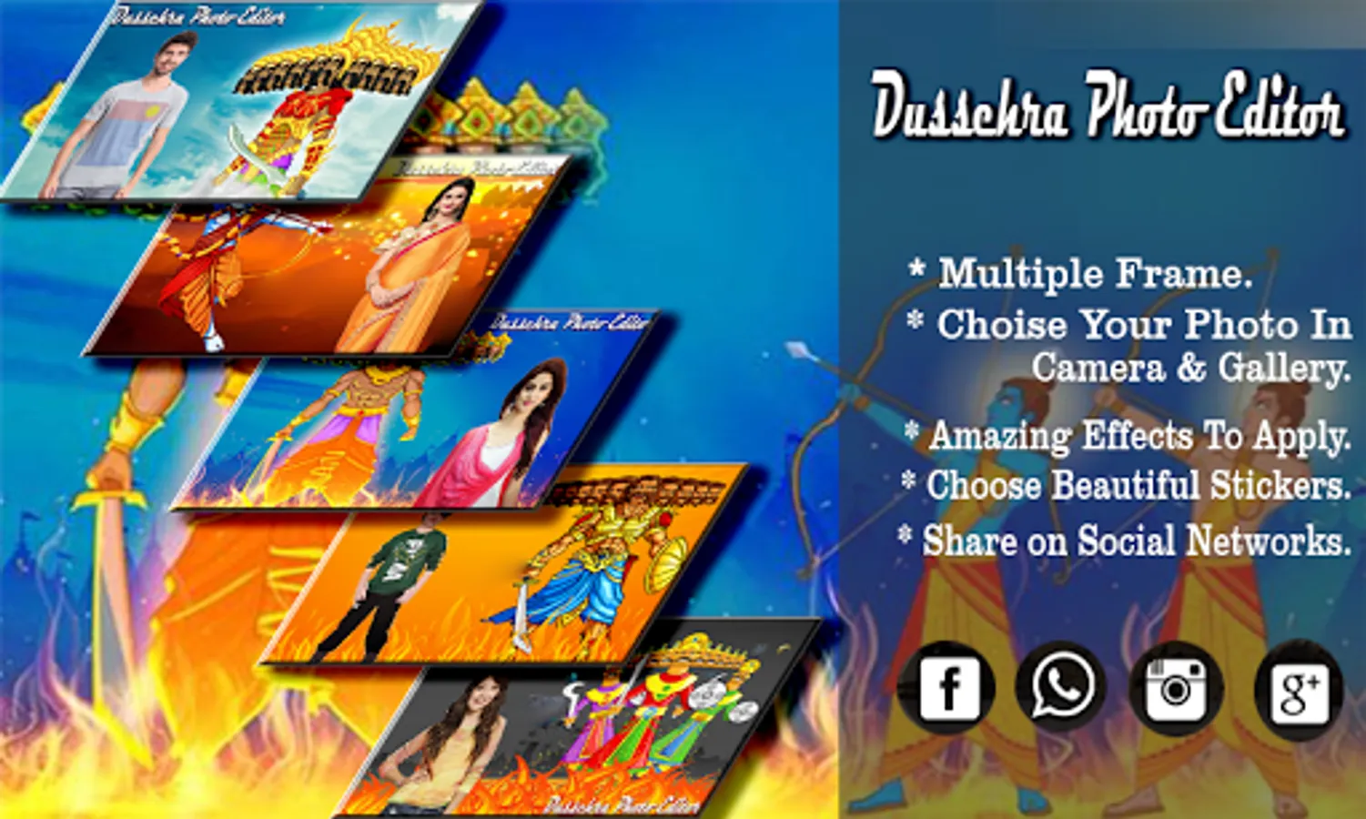 dussehra Photo Frame save your special moments with fantastic dussehra photo editor and enjoy beautiful colors of your favorite season.