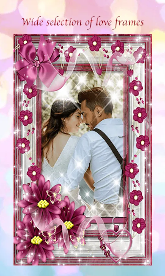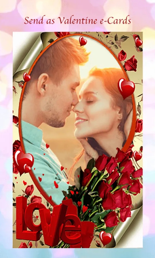 Send this new collection of beautiful flower frames which full with love and flowers to express your feelings in a beautiful way with the love of your life. Photos in this love frames could be the most thoughtful gift to impress your girl friend or boy friend by replacing the same old way of sending simple valentine greeting card. You can share and also send as e-cards wishing your love one saying I love you. Simple place your moments and see your moments through your mobile camera lens and choose your love photo frames where you can see immediately how your moments transform magically before your eyes. Personalise with love stickers. It could be a great way to express your emotion and feelings to your partner.