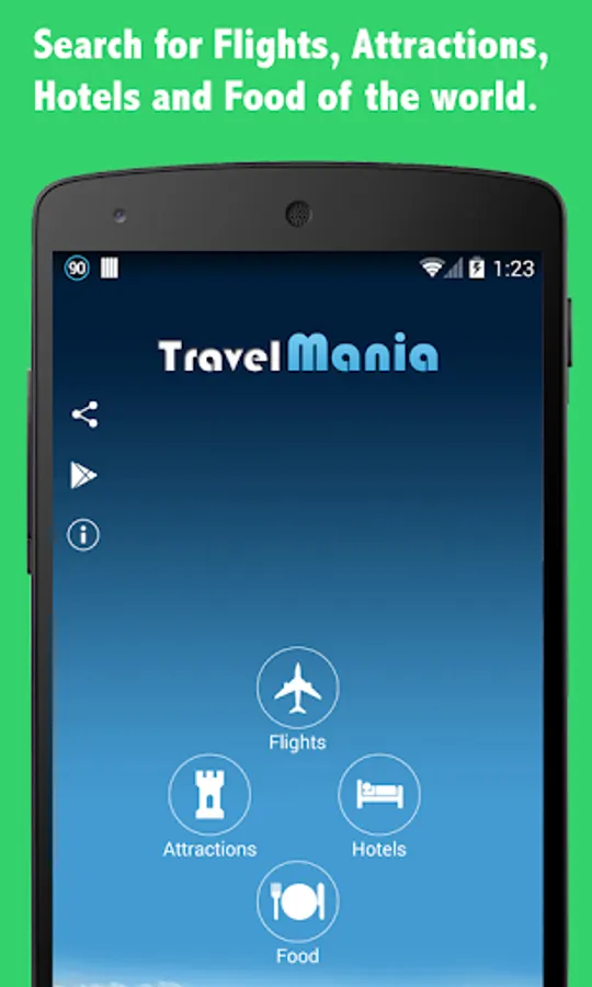 TravelMania is designed to help the traveler in every way possible.Search hotels nearby,places of attractions nearby,flights(non stop) and explore food of the world.This app will help you in your journey to the unknown.