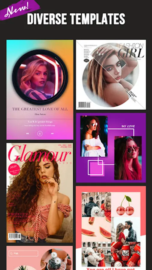 · Stylish photo grids & photo frames are provided for your pictures.
