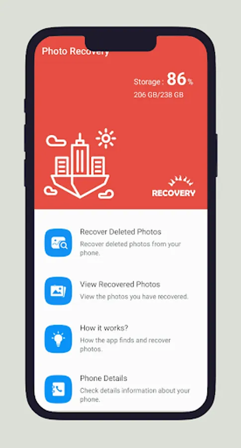 Deleted Photo Recovery App is efficient photo recovery and image recovery tool that helps you Find and Recover deleted photos & images from your phone in a few seconds.