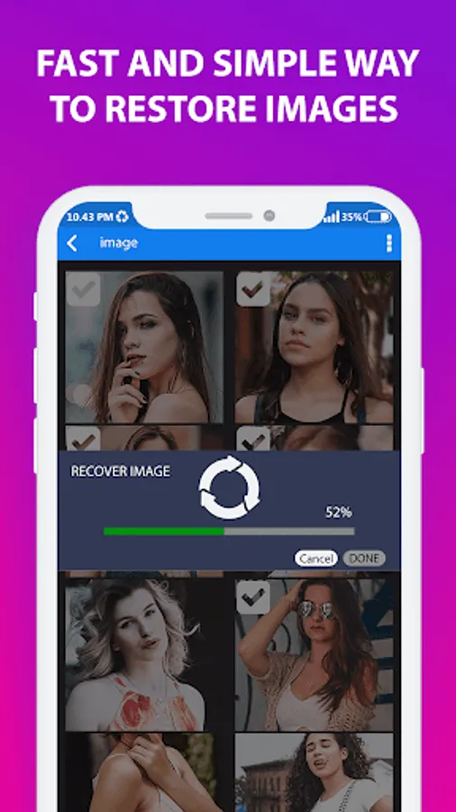 Deleted Photo Recovery - Restore Deleted Photos If you come to a situation where you just deleted all of your images by mistake, and tried a lot of apps to picture recovery them without any result, then you are at the right place. This app will solve this problem for photo restore. It will scan all your phone storage looking for deleted photos and list them in an easy manner that will help you to recovering them back to your phone storage to photo recover.