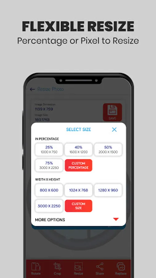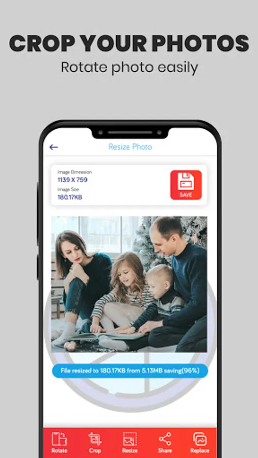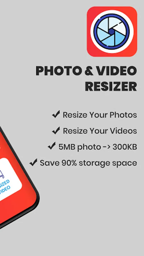 This app offers super easy way to reduce photo and video size by just one click. You can share these photos and videos on emails, social media and many more. It also saves more than 90% storage on your phone when you do resize and replace.
