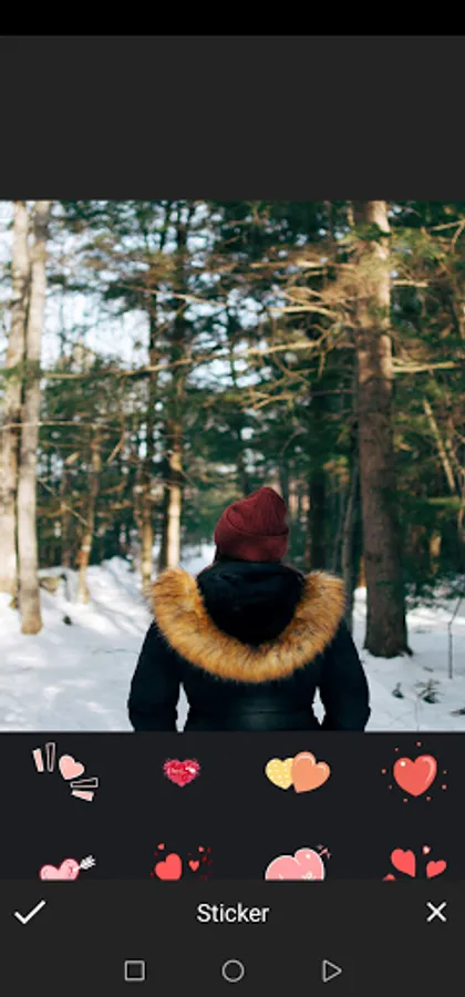 The photo editor provides many tools and materials for decorating and pasting photos: Sticker, Text, Mosaic, Drawing, etc.