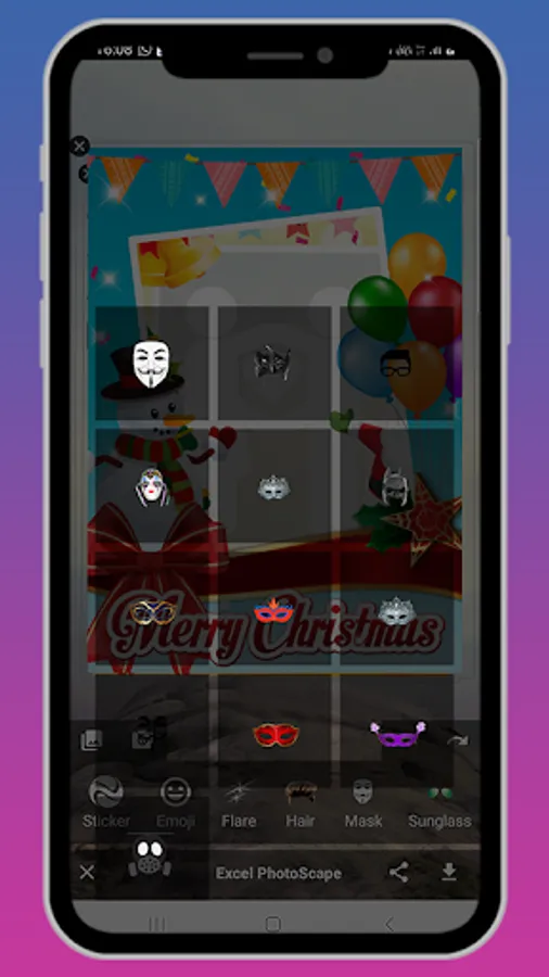 Photo Editor provides many tools and materials for decorating photos and photo collage: Sticker, Text, Mosaic, Draw, etc.