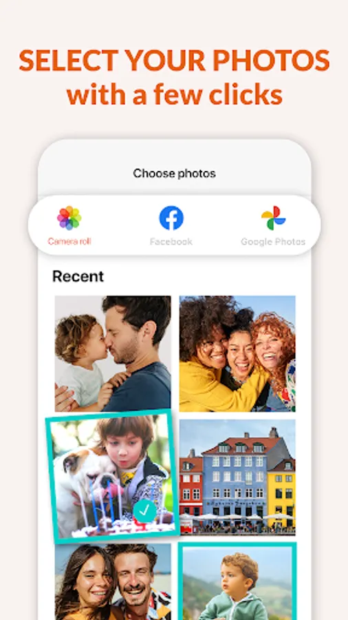 2. Choose the photos and images you want to print directly from your smartphone's photo gallery, or from Instagram and Facebook.