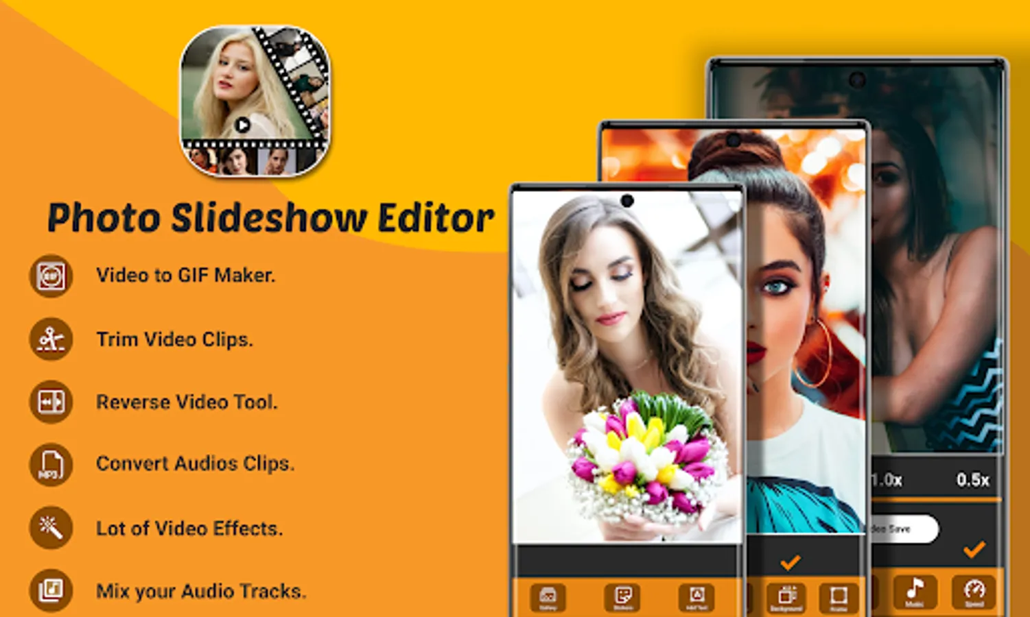 Edit Photos and videos with music slideshow & video editor is a powerful video editing tool to make & crop video and slideshow. Provide new material related video editing and video making in slideshow form for Valentine's Day . Make romantic love videos! You can combine and press videos in this Video merger and free video editor app. With simple steps, a video mark combined with hot music, animation stickers with video effects, famous themes of editing apps, special subtitles and cool transition will be shown in this PRO video editor. You'll look vivacious and shining in the video by making your video by game video editing slideshow.