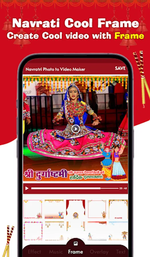 Navratri video maker 2023 can help you create navratri spacial. Create your own graba night theme video from photos and music with latest added features and navratri overlay theme.