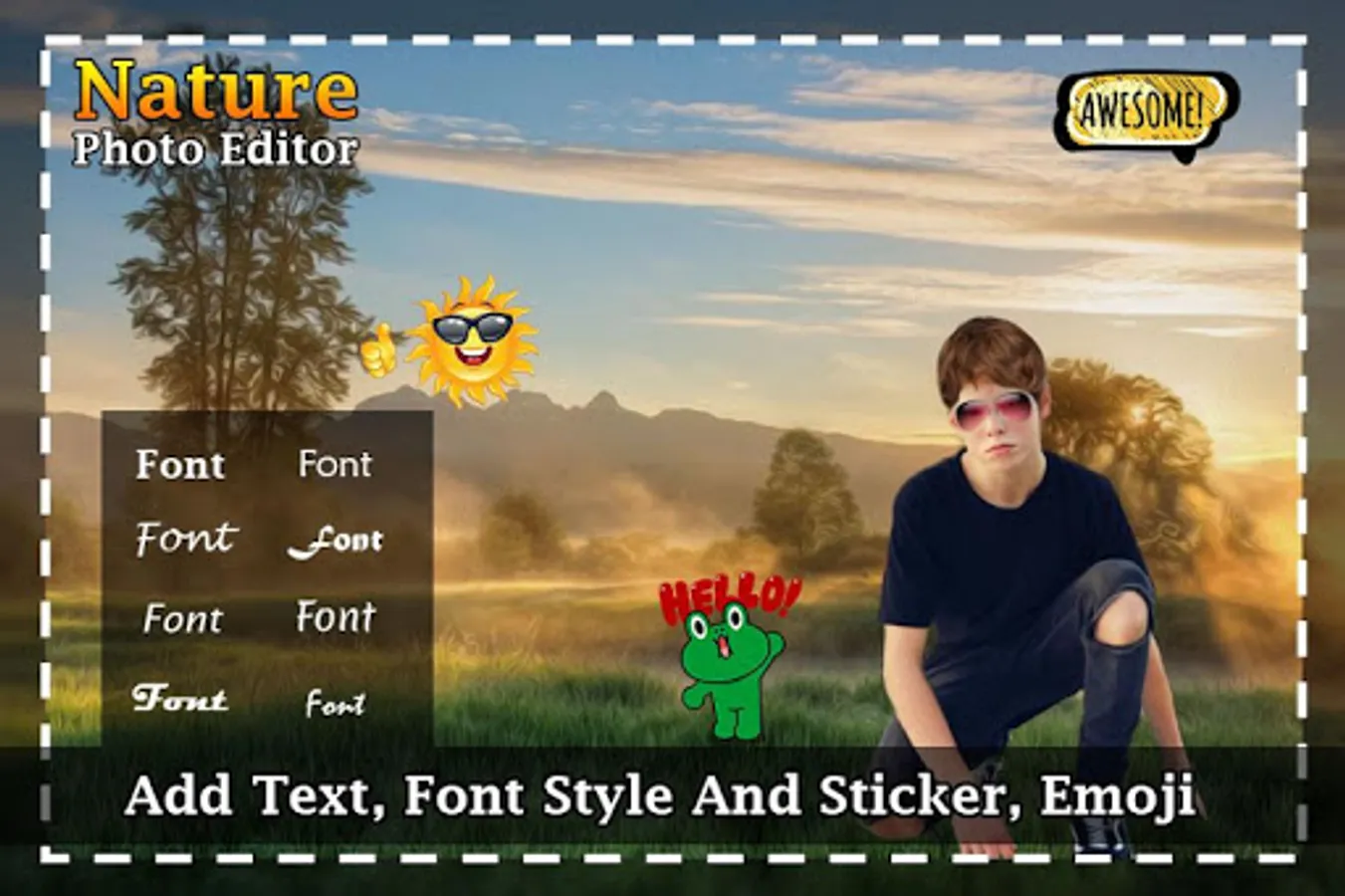 Using this app you can make photos more beautiful by decorating them with fantastic free nature photo frame,effects, text and stickers.