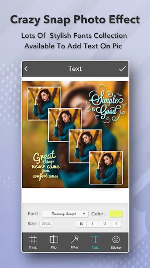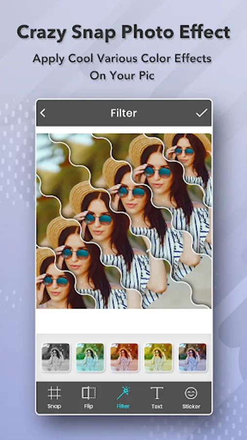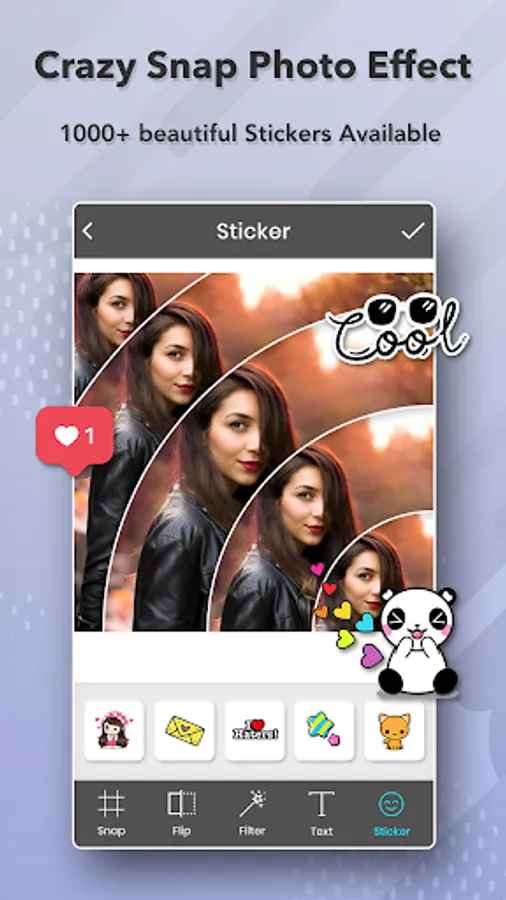 Crazy Snap Collage will provide many different effects to make your pictures be more special. Add amazing photo filters & stickers for your selfies and try to get more likes and more followers by using Snap Photo Filters And Stickers free and creative cool smiley filters and stickers & emoji to your photo.