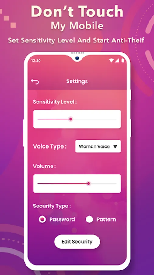 This mobile touch app works on sensor motion for alarm antifurto with sensitive touchtunes that trigga alarm and touch alarm by touching your phone. different types of alarme anti furto with touched phone is available.