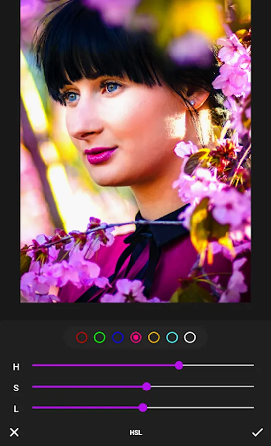 - Adjust: adjust brightness, contrast, warmth, hue, hsl and saturation, etc.