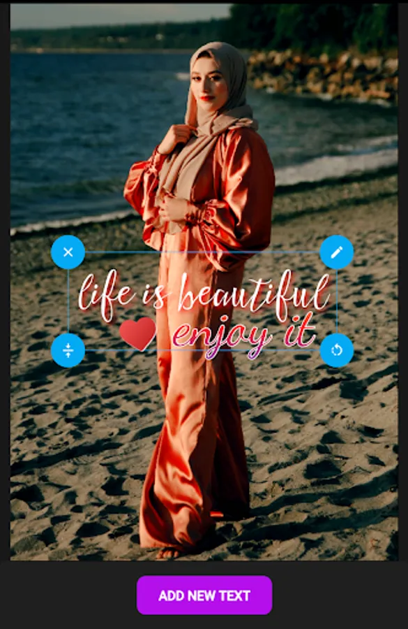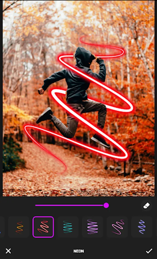 - Design: Draw on the image using the drawing tool or the neon tool by changing the color and size.