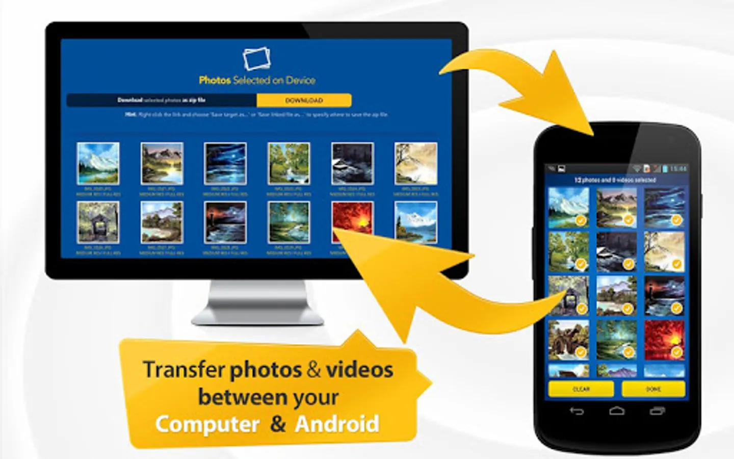 Download Photo Transfer app to send and share photos, pictures, images and videos via wifi transfer.