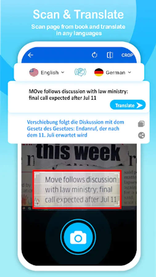 Use your mobile camera as a translator tool, via this best photo translator app. Take a Picture with the camera as well as take a photo from your phone gallery then scan and translate in all languages.