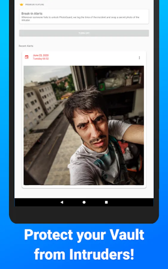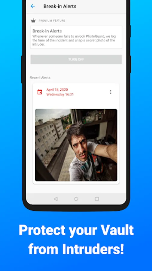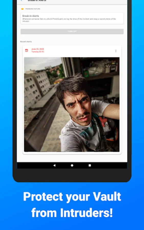 🕵️ Break-In Alerts - Keep safe your private photo vault from intruders with Break-In Alerts. Whenever someone fails to unlock Clock Photo Locker, we log the time of the incident and snap a secret photo of the intruder.