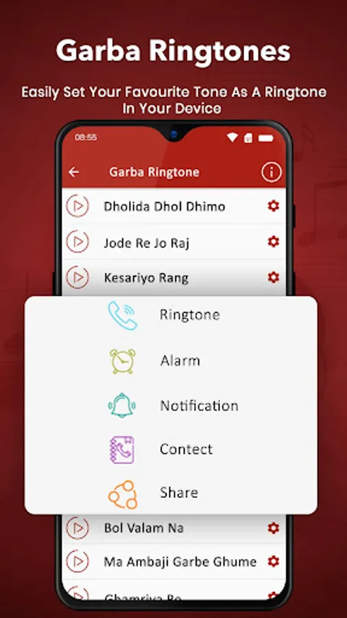 - You can set them as your ringtone, message, alarm, notifications and also share Sound with any platform.