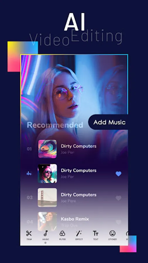 Video Maker & Editor, is the best video maker tool. You can easily make photos into a video, add background music and magical effects to create a personalized music video. Quickly give videos a new look with super popular spiral, neon photo effects, emoji backgrounds