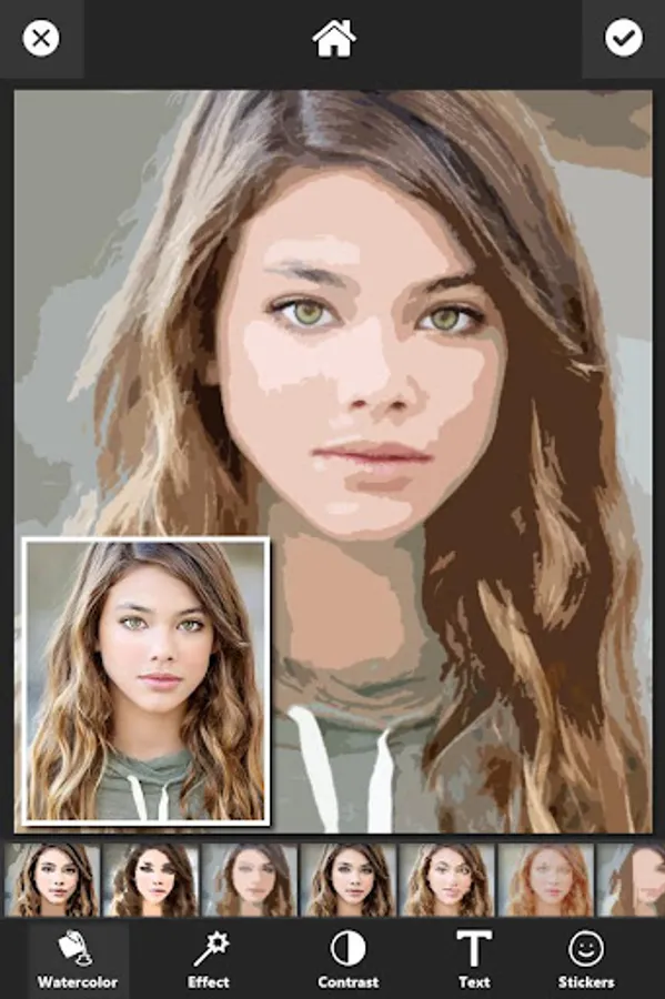 Photo to painting: With art effects you can turn photo into art. You’ll find many awesome water color effects in this Art photo editor. Convert photo to painting and impress your friends or Family!