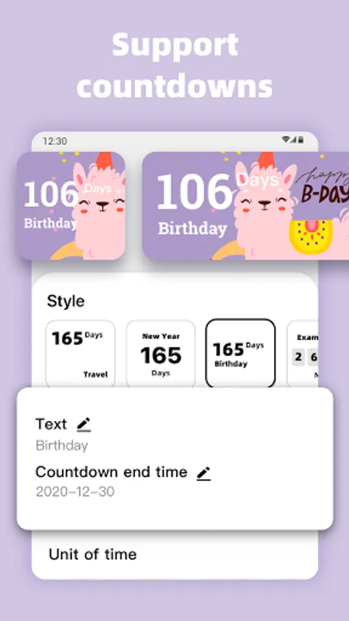 MagicWidgets - Photo Widgets, iOS Widgets, Custom allows you to add countdown widgets for reminders and time management. Countdowns can be accurate to seconds. You can customize countdowns for important upcoming events, such as holidays, birthdays, anniversaries, parties, Thanksgiving, Christmas, Halloween, Valentine’s Day, exams, goals, etc.