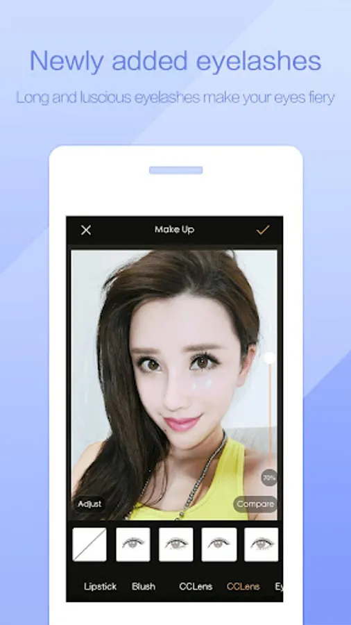 * Beauty Camera & Sweet Selfie offers preset light makeups that automatically detect your face to show makeup effect in real-time. It’s perfect for beginners who do not know how to use eye, face, or lip cosmetics. It enables you to try on the latest makeup trends in a second.