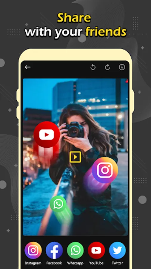 📤 Download the video from the app or share it on Instagram, Facebook, YouTube, Twitter, or much more directly from the app