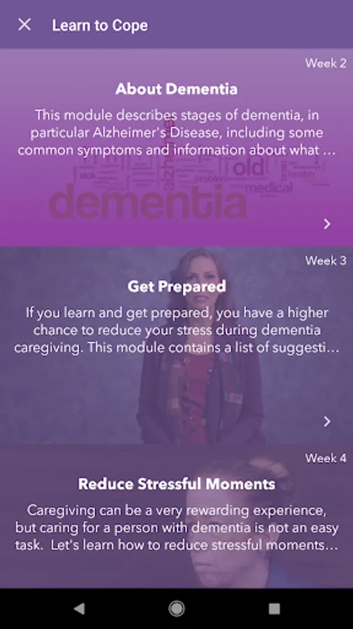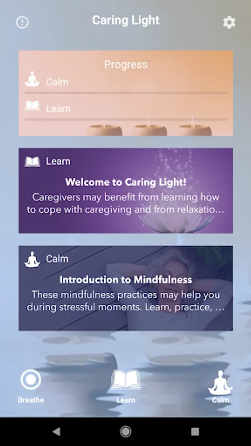The Caring Light App provides information about how to cope with the difficulties related to caring for a person with Alzheimer’s Disease and related dementia. This self-paced program also contains calming mindfulness practices that may help during stressful moments.