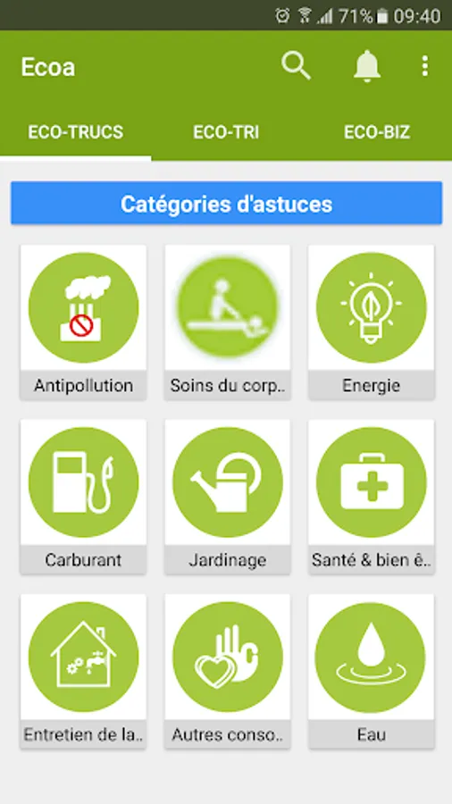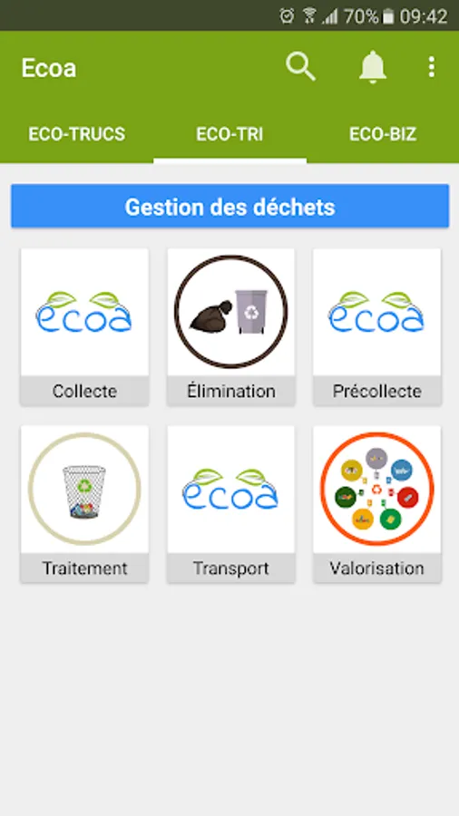ECOA is a platform (application and website) which diversified its users complicit in the protection of the environment through their everyday actions. There are three main headings: ECO-TIPS, ECO and ECO-TRI-BIZ: