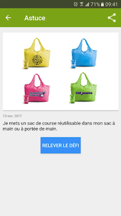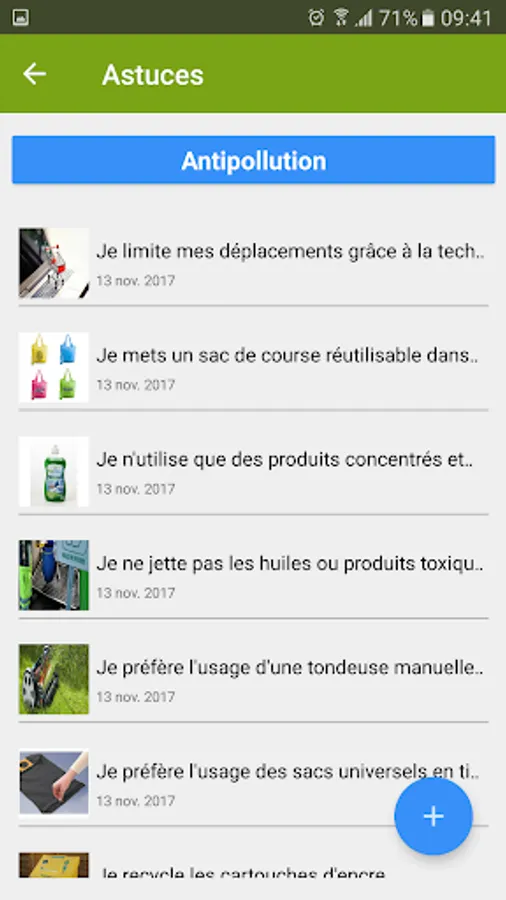 ECO-TIPS is the topic that presents a list of gestures, tips and advice, implemented, will users, eco-citizens made. These gestures are challenges that can be met only (e), with family or friends. Reminders of those challenges are, according to a frequency that is based on each trick or gesture, to provide the best support the user in his desire to preserve the environment.