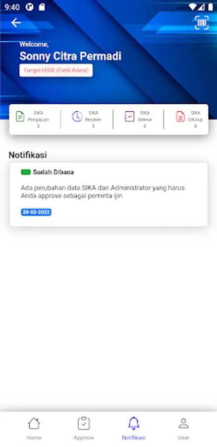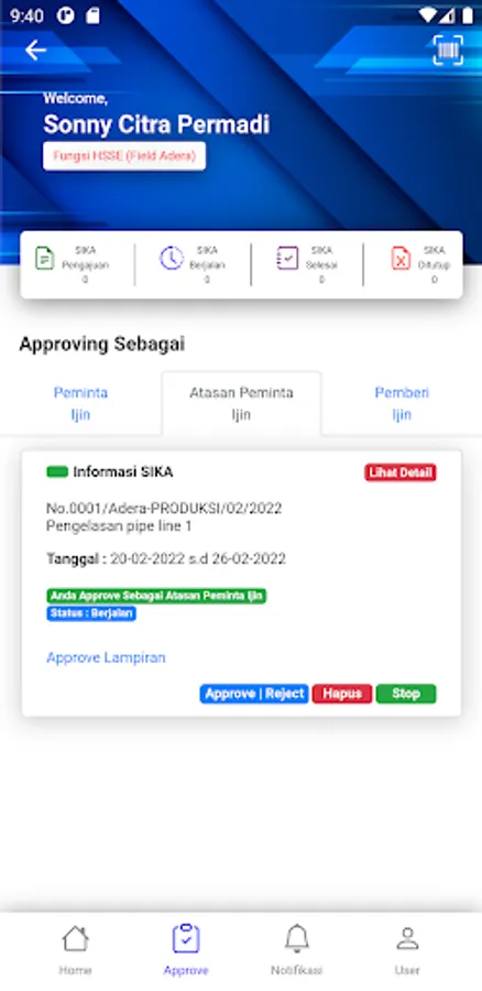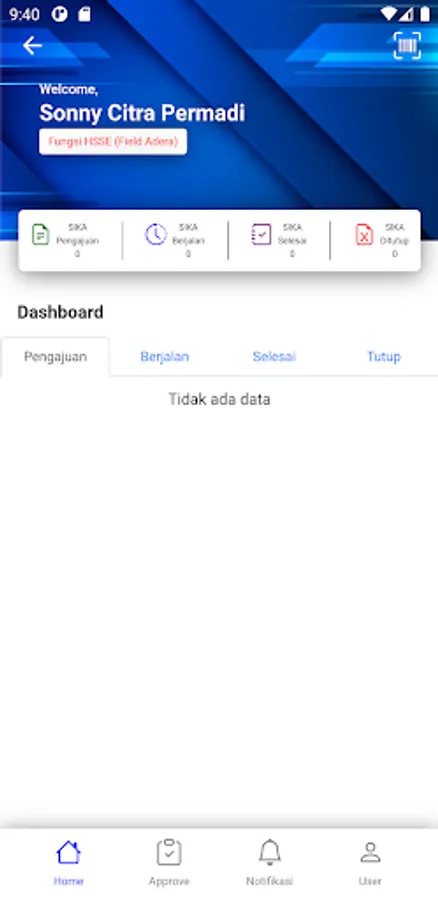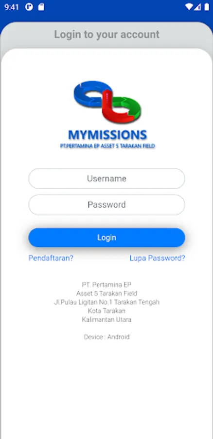 MyMission is an application that will be a place for various activities that run on the HSSE function of PT. Pertamina EP Asset 5 Tarakan Field and is now also used in the Pertamina work area zone 4. In the future this application will contain various types of applications which are digital activities carried out at PT. Pertamina EP Asset 5 Tarakan Field and also zone 4, especially in the HSSE function. Currently this application contains the digitization of making SIKA (Safe Work Permit). This application will continue to be updated to provide applications for other activities in the HSSE function.