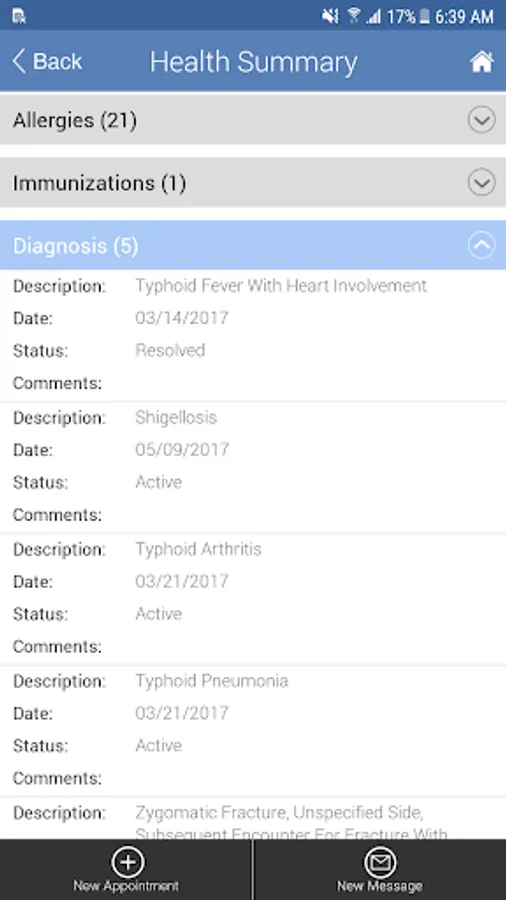 • Health History: Holds directory of your medical history, health record, medications, allergies and immunization records.