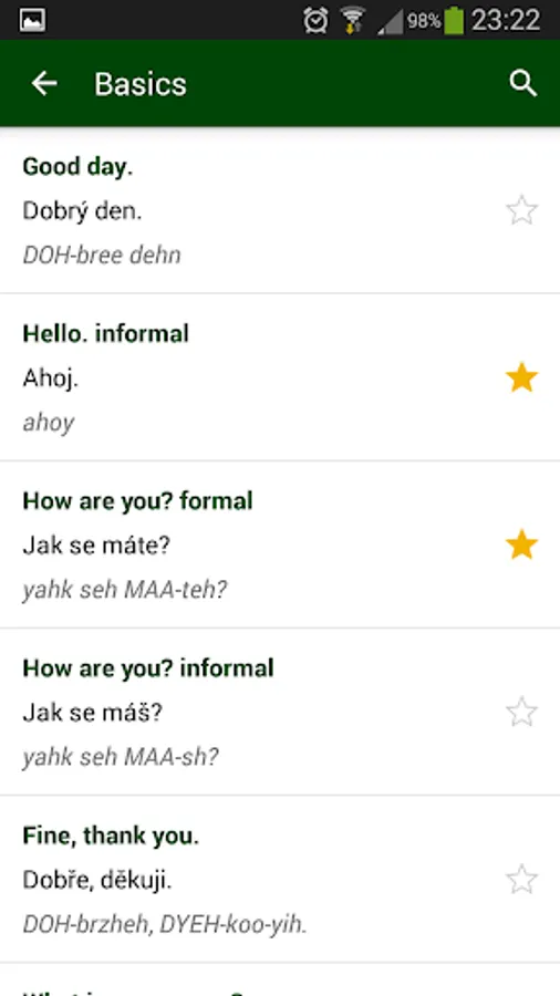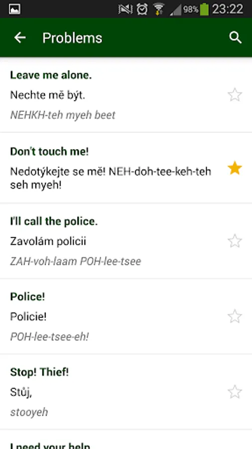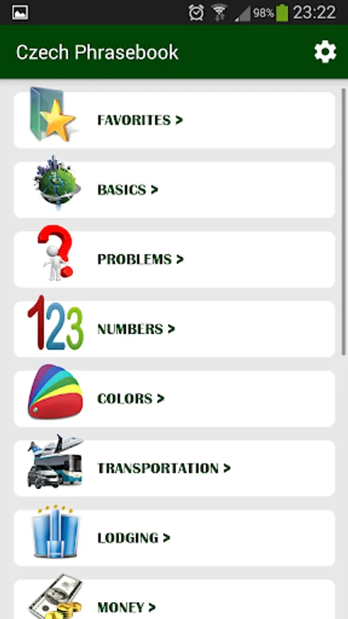 Very useful Czech phrasebook, when you go to the Czech Republic or any other Czech speaking country! This phrasebook contains sentences from different categories, for example: