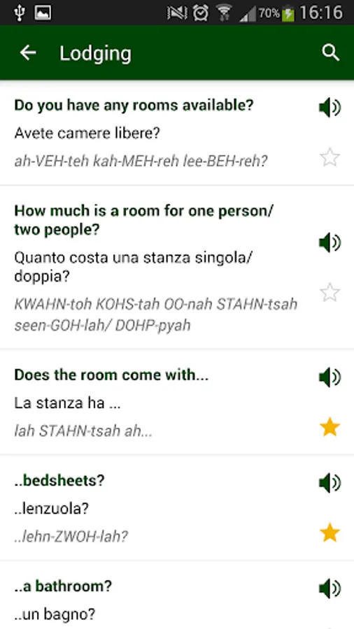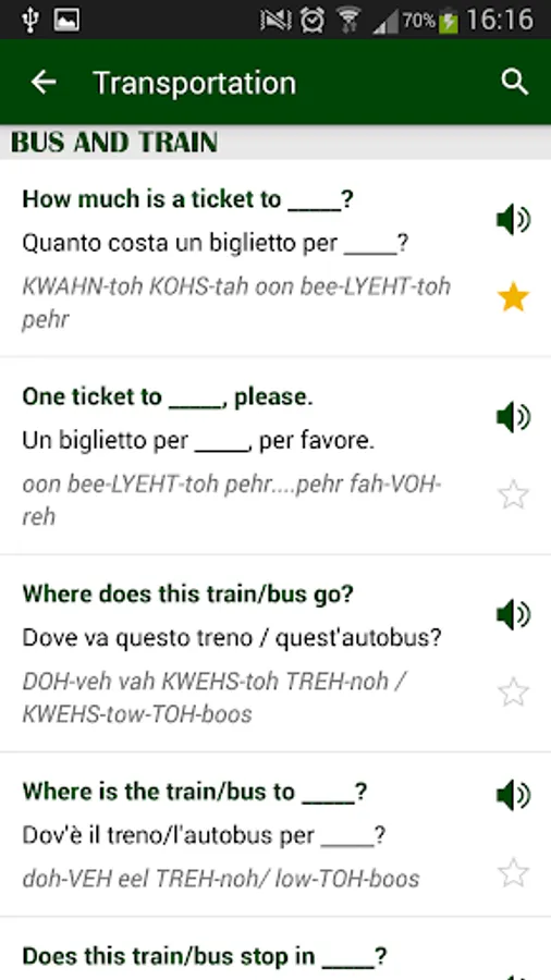 Very useful Italian phrasebook, when you go to the Italy or any other Italian speaking country! This phrasebook contains sentences from different categories, for example: