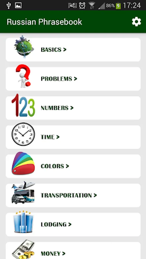 Very useful Russian phrasebook, when you go to the Russia, Ukraine, Kazakhstan, Belarus or any other Russian speaking country! This phrasebook contains sentences from different categories, for example: