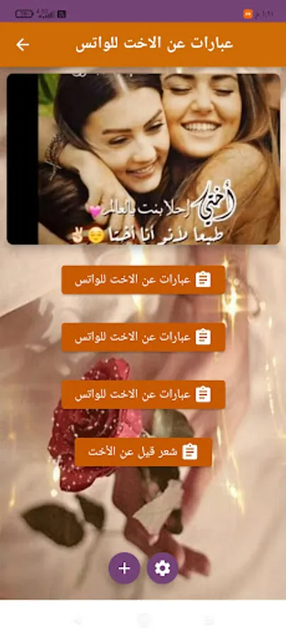 From this application, you can now find or find the appropriate phrase through which you express your great love for your dear sister in phrases about the sister for WhatsApp and share it with all family and friends in a case or in a message on WhatsApp and others.
