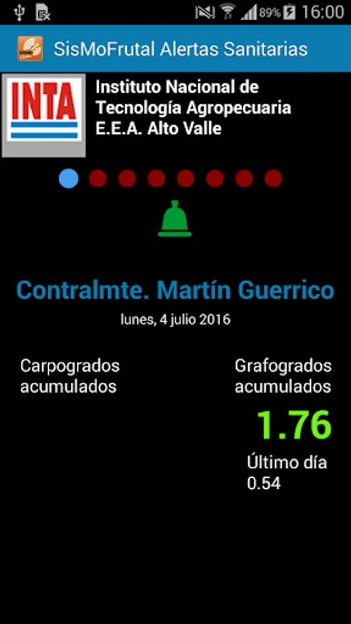 Application for viewing Carpogrados and Grafogrados, data collected by the Monitoring System Fruit (Fruit EARTHQUAKE), INTA