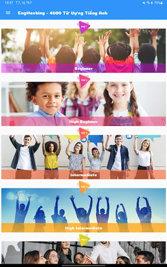 Enjoy learning vocabulary in 6 levels, from basic to advanced 📊📈, **EngHacking** gives you amazing progress. Explore 180 topics and 4000 common words 📖✨, helping you to expand your vocabulary comprehensively. You will become more confident in everyday English communication.