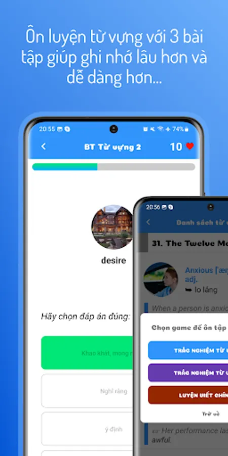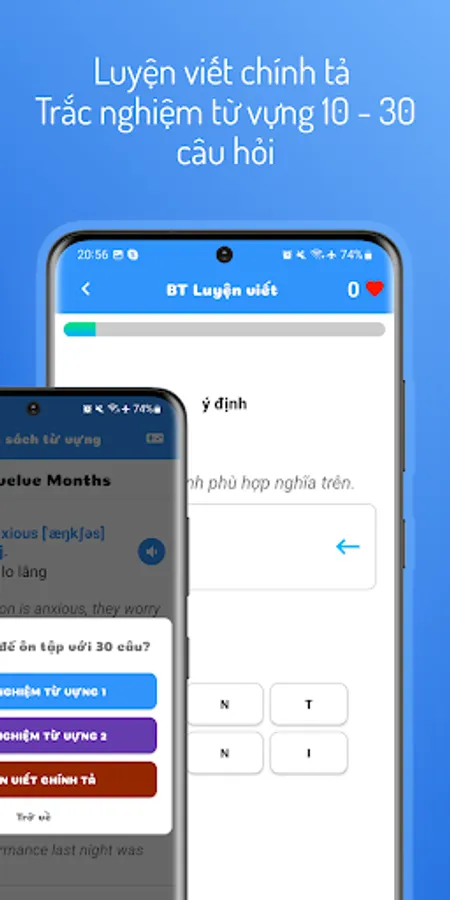 **EngHacking** is not only limited to learning vocabulary, but also provides fun quizzes and word matching games to enhance memorization and writing 🎮✍️. Take part in these games and become a conqueror of English vocabulary.