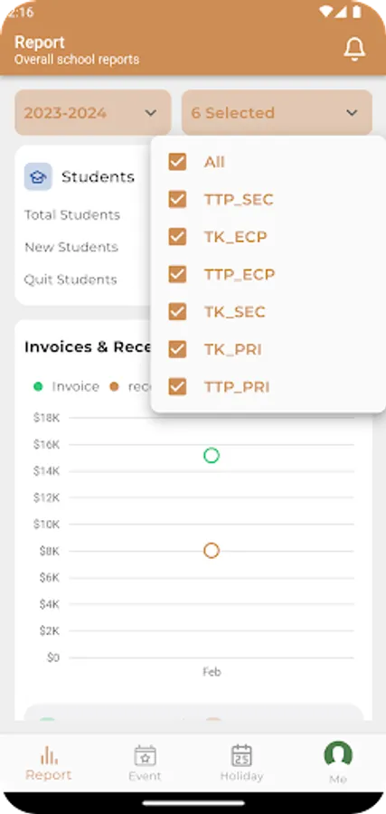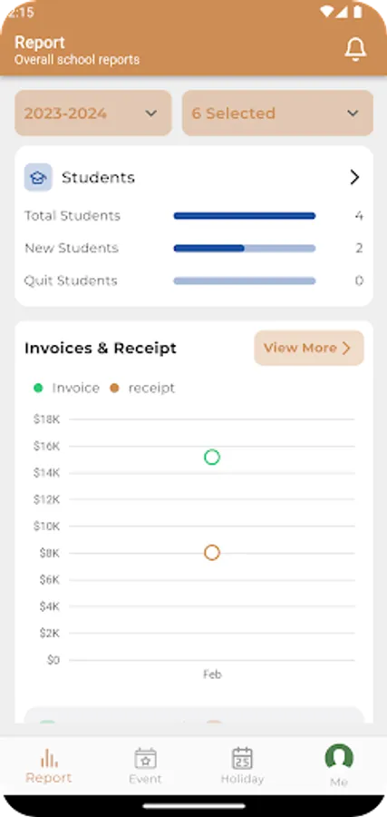 Phum School Report is a simple and easy way to view your school's statistics on daily fee collection, teachers, and students.