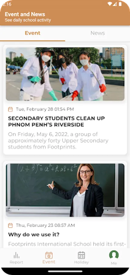 Keep up to date with school event and holidays and notify about interesting news happens around the campus.