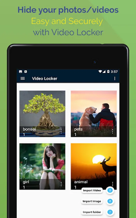 Keep photos/videos hidden safe from prying eyes in Video Locker - Hide Photos! - The ultimate secret gallery app to hide videos/photos on your Android devices.
